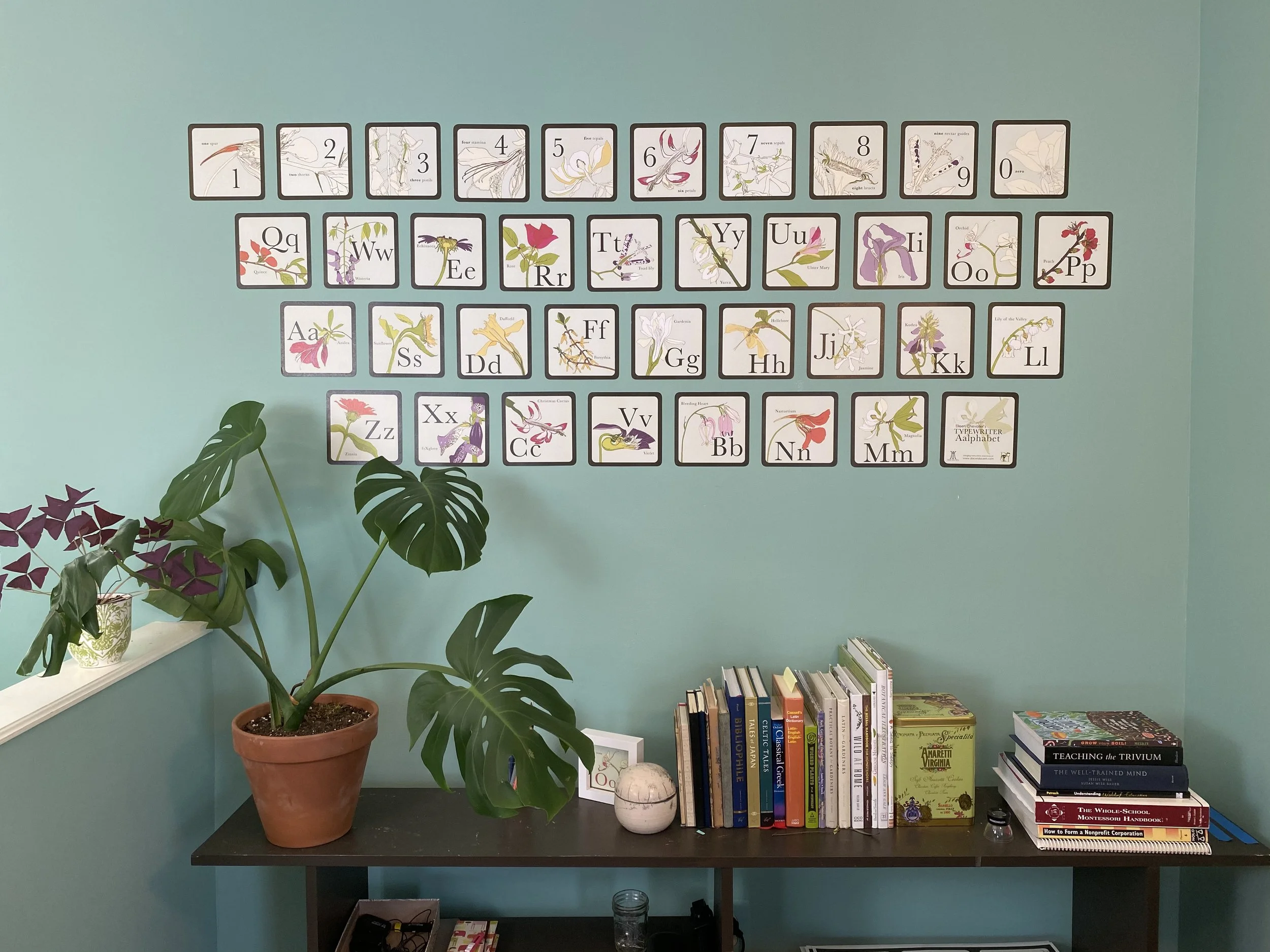 Mount the Typewriter Aalphabet in your store. You can watch video instructions here. (This is for the Art Cards, so just adjust the measurements for the smaller Flashcards.)